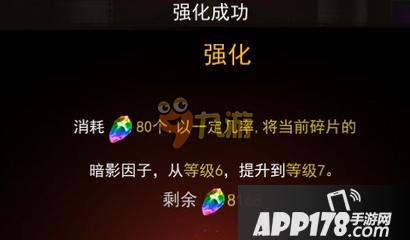 暗影因子越高的碎片,所需要的幻影石也越多,其强化成功几率也越低。