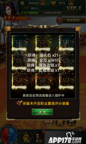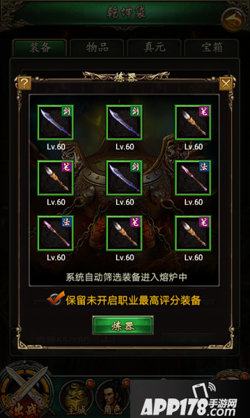 1、系统会自动筛选装备进入熔炉