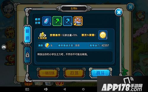 学级大堂副本产出是前期装备的主要获得途径。每次成功通关普通关卡和精英关卡都有几率掉落紫装和橙装碎片。通关每章和全S通关每章获得的宝箱奖励中还可以一次性开出10个装备碎片。值得一提的是,每个副本都有特定的碎片产出,所以缺少哪些碎片,有针对性的去扫荡吧。当然每个副本每天的挑战次数是有上限的,不要浪费机会哦。