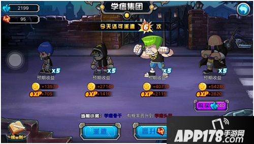 功能刚开始时系统会分配一个小弟给你。派遣他出去校园里溜达着收保护费吧,等到倒计时结束就可以收获金币和经验奖励了。