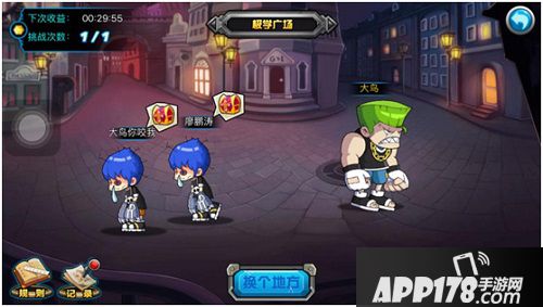话说人在江湖飘,哪能不挨刀。校园里收保护费的可不止你们一家。狭路相逢勇者胜,街上发现其他的玩家的小弟,挑战他,赢了的话可以抢夺他的战利品。每次派遣只有一次挑战机会,善用哦。