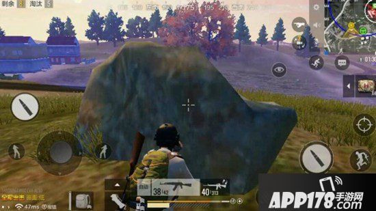 如果是在交战中,隐藏在石头背后的玩家能够在石头后面很好观察对手。如果对手要进攻只能是扔手雷或者绕后,这就意味着对手要停止进攻,我们就可以趁着这个空隙时间反击。