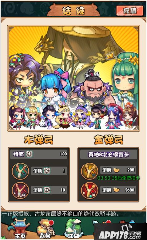 结缘符招募,每次招募可以获得白色以上侠客。人品好的话,获得紫色侠客也是很有可能的,就是几率低了点。结缘符招募需要消耗结缘符,每次招募需要消耗1个结缘符,结缘符可以在游戏活动和福利中获得。