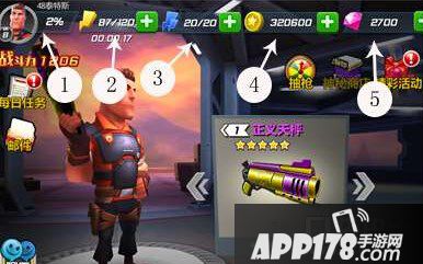 5.钻石数量:钻石用于抽取武器或者购买其他道具,目前未开放充值,只能通过每日签到或者完成任务领取。