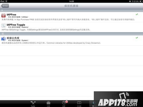 添加这个源成功之后,在【软件源】中就可以看到【疯狂机器猫】的选项,选择这个之后,进去将【IAPFree】和【疯狂猫公共库】安装。