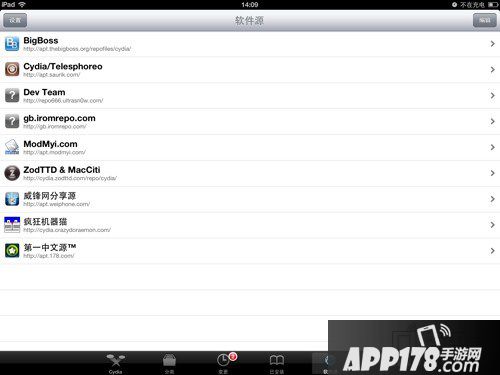 进入后,选择【软件源】,选择【编辑】=》【添加】=》输入cydia.crazydoraemon.com,然后添加这个源。