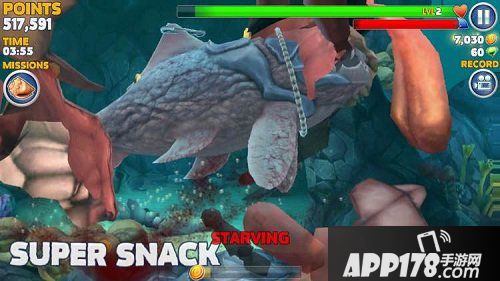 饥饿的鲨鱼进化是一款大鱼吃小鱼小鱼吃虾米的游戏,因此游戏中设置了各种不同等级的鲨鱼,并且为每一只鲨鱼设定了指定的属性,例如潜水的深度和游泳的速度等等;玩家通过不断的吃鱼获得金币和钻石,在达到一定条件下的时候,就可以解锁下一只更加强大的鲨鱼,这就是鲨鱼进化的概念。