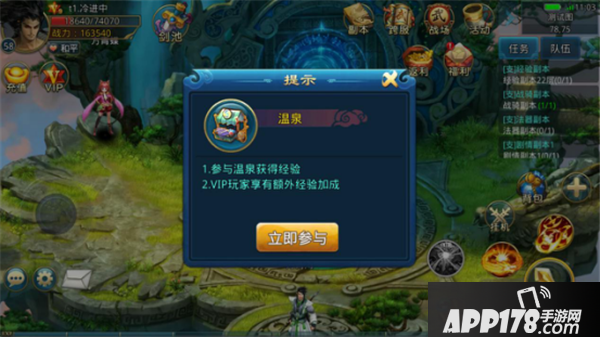 温泉活动开启后,玩家可以点击活动按钮传送到温泉区域,或者在活动大厅中点击参与温泉。