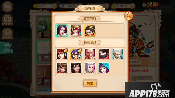 在选择伙伴界面能够看到目前玩家拥有的所有伙伴,点击伙伴头像确定以后即选择该伙伴进行游历。