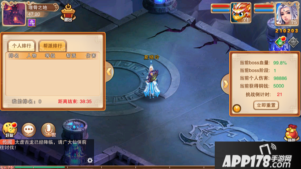 参加超级BOSS活动,铜币积分拿不停,还能获得超级强大的怒气技能书,我们只需要在活动开启时点击参与然后让角色自动挂机就行了,当然如果想要打出更高的伤害还是需要我们手动操作哦,快来一起挑战太虚古龙吧!