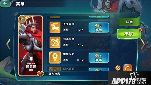 天赋选择:大家在游戏画面中的左侧可以看到一个蓝色小三角,点进后选择英雄阿瓦隆。其中详情和天赋分别对应的是装备和技能,玩家在每一次的升级都会获得天赋点数,我们可以投资在不同技能上。随着技能等级的提高,所需的天赋点也会增加。以下就针对两种主要类型的玩家来作技能说明: