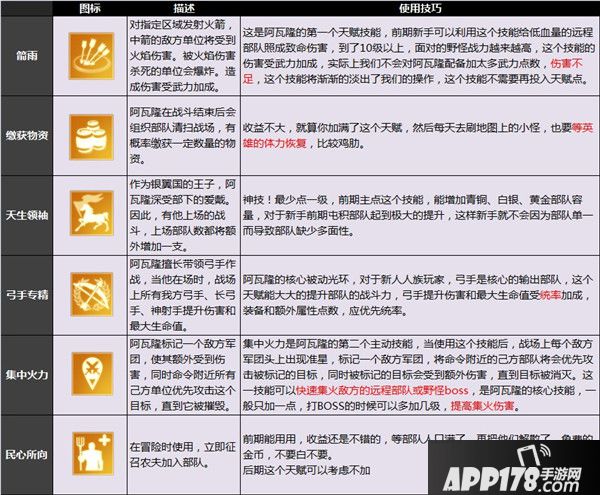 兵种、英雄搭配:从技能上来看,阿瓦隆拥有的弓手专精让他在兵种搭配上显得明确。配上弓箭手等远程兵种能最大限度加强该英雄的作战能力,在这我列出几种情况对应搭配。
