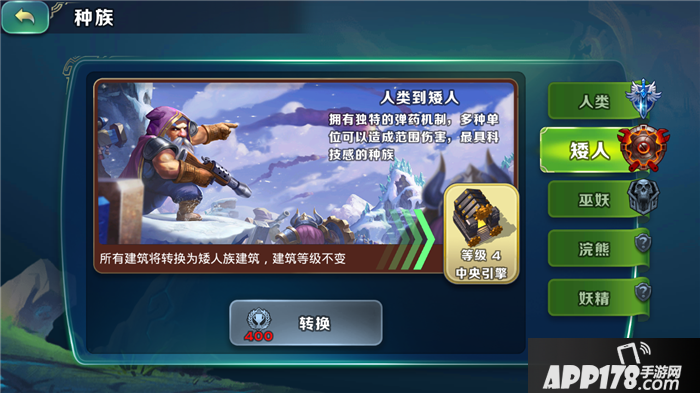 而游戏的兵种选择也是十分多样的,目前游戏中共有五大种族,每一个种族都拥有自己相应的特色建筑,兵种的特点也不尽相同,例如人类的特典就是均衡;矮人拥有很多科级单位,可以造成大范围的伤害;而巫妖则造价低廉,并且可以从战斗后的尸体中召唤作战单位,玩家在选择的时候也要充分考虑各种族的特性,扬长避短的来制定战术,才能使战斗更加顺利。