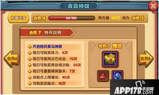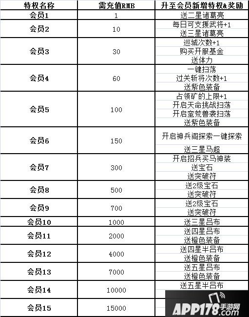 分析上面的特权后,在小编看来,先充两个月卡,再看秘宝商人里有什么划算的商品,当达到VIP7时,基本上享受的特权也足够了。然后再努力升级,在VIP3开启的开服基金领元宝,一键扫荡关卡,每日探索神兵阁,抢抢别人的矿场,所获得的资源就可以驰骋三国战场~