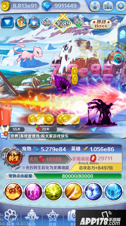 这里就要注重技能的搭配使用了,可以提供战斗力提升的技能一共有五个,掌握技能的冷却时间,搭配好技能的使用就能够快速地冲过两个甚至三个BOSS!这样相对而言就节省了大量的挂机时间!