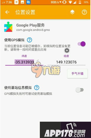 1、把坐标复制到模拟位置中的Google play服务的模拟中