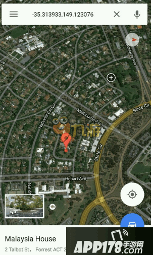 以上软件都安装成功之后,我们打开gps进入谷歌地图,长按任意位置搜索栏出现该地点坐标,小编选的的澳大利亚首都堪培拉附近。