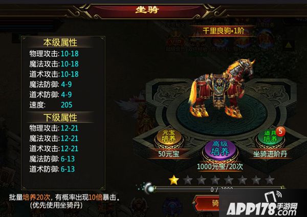 记得多喂你的坐骑吃点坐骑进阶丹,是获得更绚丽的坐骑的必备良品哦!