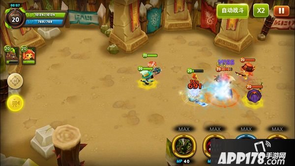 游戏开始后,所有场上英雄都是20级,并且技能全满的。我们可以控制一名英雄,这个时候我们主动性就表现出来了,面对战斗力低的敌人可以直接选择自动战斗并且加速X2果断结束。遇到战斗力更高的敌人,我们最好选择战士来控制。首先上场就直接绕过对方的肉盾,两个肉盾对抗并没有明显优势,但是绕过到后排攻击对方的法师,那么就大不一样了。法师的小身板基本扛不住我们战士的一顿乱揍,只要实力差距不是太大的前提下,战士在倒下之前肯定能先解决对方输出最高的法师或者弓箭手。如果能坚持到技能CD恢复后,那么再眩晕控制住对方另一名后排,那么很容易就能用一个战士换对方2个主力输出的后排英雄,这样一来即使对方战斗力高过我们,我们也有机会取得胜利。即使失败了,不要紧,再次匹配到另一组敌人,总会遇到全力培育法师或者弓箭手的玩家,那么就可以正中下怀了。