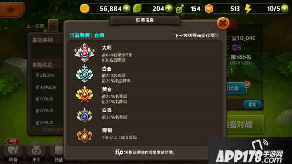 段位分段: 由5个分段构成的联赛内玩家与玩家可以对战. 联赛的赛季运营以一周为单位,赛季结束时在联赛上位的给与奖励和升级为更高的联赛,而排在下位的用户会给与降级处理。具体规则如下