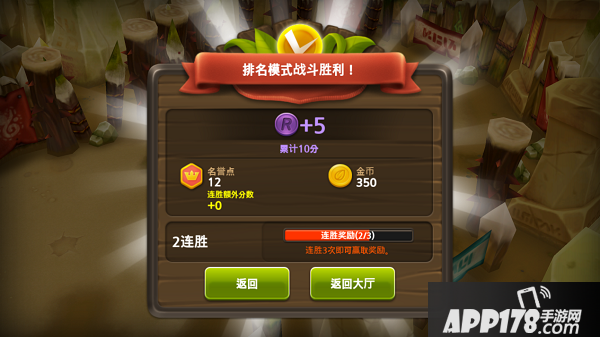 奖励 : 对决胜利时提供基本奖励为金币及名誉点。在随机箱子里还可以额外可获得与小兵、装备和道具。