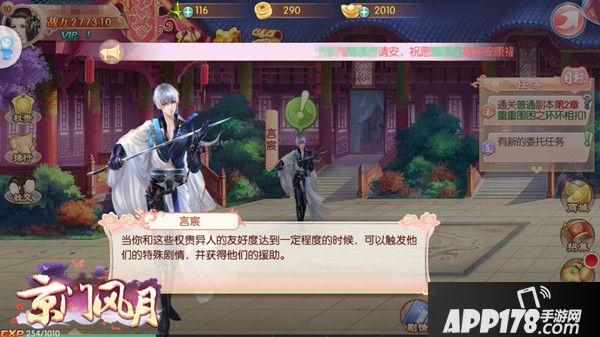 初入京门的小伙伴一定会首次先冲向剧情,因为可以获得更多的经验,更快升级。但是,当支线剧情开启的时候,请一定不要忽视哦,攻略支线可以获得NPC的好感度,从而得到NPC们的援助,这对于主子们在京门中的发展非常有帮助,并且可以减轻你在主线剧情攻略中的难度,毕竟等于多一个援助帮手,不是吗?