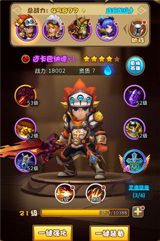 合理搭配英雄往往能够虐杀等战力对手甚至反杀高战力,因此新手上路有一个趁手的阵容能让进阶之路顺畅不少。首先需要考虑的是元素相克,游戏中遵循风→地→水→火→风,相互克制的元素属性规则。推图打怪尽量上阵不同元素的英雄,PK则根据对方阵容调配,获得一定优势。此外上阵含有灵魂链接及能激活合战技能的英雄能够使利益最大化!