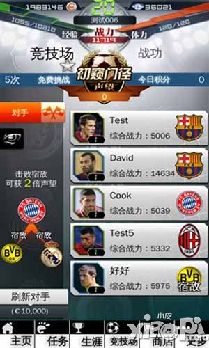 4.转会市场可以用欧元购买球员,每天有3次免费刷新球员机会也可以用钻石刷新
