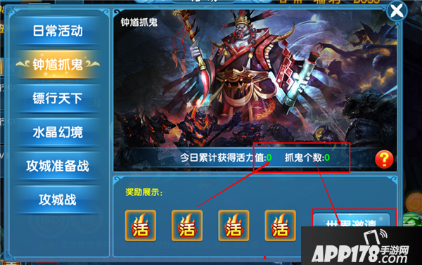 点击活动面板可打开抓鬼界面,玩家可以自己创建队伍或者加入别的队伍,抓鬼活动必须组队进行。点击世界邀请可向世界喊话组队,活动界面可以查看今日捉鬼次数和获得活力。