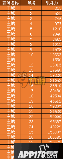 主城升级提高的战斗力: