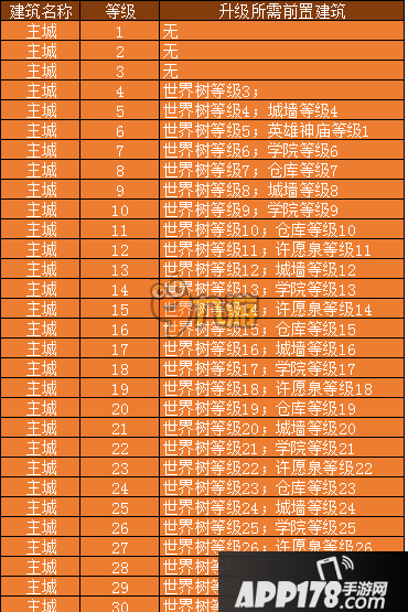 主城升级所需前置建筑: