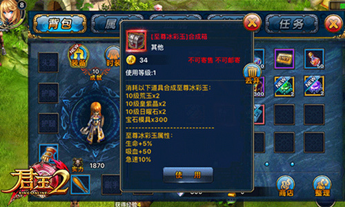 以疾风剑圣为例,作为战力强力属性之三的皇紫晶(吸血攻击)、日曜石(攻速)、荒玉(生命提升)代表宝石,只要几样作为材料的宝石全部存放在背包中,玩家可通过使用稀有道具“至尊冰彩玉合成箱”即可将三颗宝石合而为一,获得至尊宝石“至尊冰彩玉”,剑圣就能通过一块宝石收获自己梦寐以求的多种属性,战力瞬间飙升。