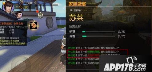 玩法介绍:每周一、三、五晚19:30,家族成员可前往家族领地中,按【食神】的要求收集各种食材。食材收集齐全后,食神便会为家族成员烹饪出各种美味佳肴。若在20:30内还没有收集到食神需要的食材,食神便不会再烹饪了哦,食神可不是一般人,想吃珍馐美味就得抓紧哦~