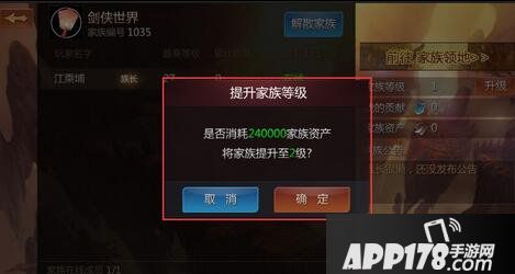 升级家族的好处是很多的,包括:开启“埋骨之窟”关卡、家族人数上限增加等,告诉大家一个小诀窍,怎么去分辨二级家族和一级家族:主要就是看人数上限,每升级一次家族,人数上限就会多增加10人哦~