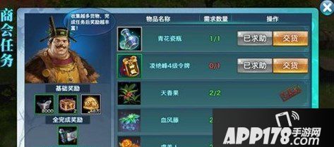 每次的商会任务均是古董收集、信物收集、凌绝峰令牌收集以及采集任务的随机数量组合。除却采集任务必须由少侠亲力亲为外,其余收集任务每天均共有三次家族求助的机会。其他家族成员协助后,可以获得一定数量的贡献,所以少侠一定要把这三次求助都用掉。对于自己缺少的古董、信物或令牌任务,少侠更应该将其放到求助中,请求家族成员帮助自己解决。
