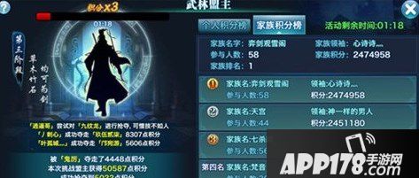 武林盟主不仅仅是个人的荣耀,更是集体的荣耀,家族凝聚力的象征,考验的是家族内是不是每个人都积极参与。独孤剑、南宫飞云、杨影枫三位武林盟主每天都等候少侠们的挑战。