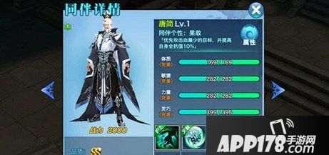 以上就是全新的武林盟主唐简的介绍了。唐简的魂石提供力量和敏捷两个非常重要的属性,同时又是一颗初级五级魂石,成长空间非常高,也只有秦始皇(阴)、秦始皇(阳)两颗魂石才能和唐简媲美。而唐简的同伴提供的护主技能天罗千机步非常适合唐门、天忍等需要会心的门派,同时自身又是SS品质同伴,提升空间非常大,是非常卓越的同伴。