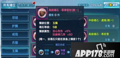 从镶嵌位置来说:玉佩部位魂石有上官飞龙、李斯、虞姬、祝子虚、耶律楚材、燕若雪等等。其中李斯、虞姬、祝子虚魂石能升橙色,上官飞龙、耶律楚材、燕若雪只能升粉色。目前紫色套大众化了,粉色套也是常见,任性型的少侠正在冲击橙色套。初级品质为蓝色一下的过渡使用就好。耶律楚材相比同位置的其他魂石都差很多,不过耶律楚材魂石非常的廉价,在经济能力允许能力下建议换其他类魂石。