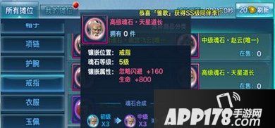 同样在戒指位置,粉色天星道长魂石可以增加160点忽略闪避和800点生命,而紫色的赵云魂石就可以增加168点忽略闪避。至于天星道长提供生命值基本可以忽略不计,在实战中并没有忽略闪避的属性好,所以从属性上看赵云魂石优于天星道长。在成长空间上,赵云也优于天星道长。不过赵云魂石唯一魂石,只能镶嵌一个可以去下一个天星魂石换上赵云。