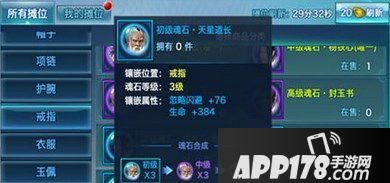 天星道长镶嵌后增加忽视闪避和生命值。初级品质为蓝色,最高可以升到粉色。附带的生命值就是血量不多解释。