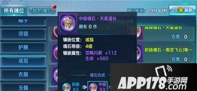 中级魂石·天星道长,魂石等级:紫色4级,忽视闪避+112、生命+560。