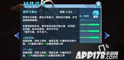 新同伴完颜洪烈,等级和秦始皇一般为SSS级,发展潜力巨大,有着突出的增幅效果,其户主技能——森罗万象步加成玩家一定最终攻击放大值、基础闪避以及属性效果几率,且个性狡诈,战斗中优先攻击血量少的目标并提升自身攻击力5%。