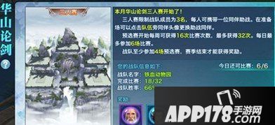 1、本届华山论剑为三人组队赛,限制战队成员为3名,每人可携带一位同伴助战。在准备场可以点击队伍旁同伴头像更换助战同伴。