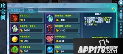 逢重大节日时,珍宝阁还会增加平时少侠们常用的其他道具进行打折限量出售,少侠们一定不要错过。名望商店是为游戏中的师父们所设,消耗名望,少侠们可以兑换传功丹、五香粽及各色水晶等道具。名望商店每周一凌晨4点刷新,少侠们也可以多加留意、积攒名望等待珍贵道具的出现。少侠们利用充值平台,则可以进行礼包充值等,享受更多特权。