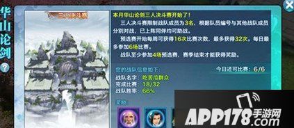 华山论剑的新一届的赛制是三人单挑赛制,战队成员为3名,根据队员编号与其他战队成员分别对战,已上阵同伴皆可助战。对战过程中,将对手主角和同伴全部击败的一方获胜,如果在规定时间没有决出胜负就以输出的伤害值高低论输赢。三场比赛全部完成,胜场多的战队获胜。