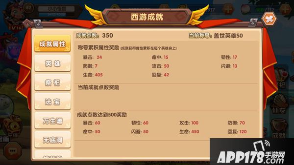 少壮不努力,PK徒伤悲!若是不满现状,又找不到能够快速提升的渠道,那就快来累积自己的成就,领取英雄属性加成吧!奋起呀少年!用成就堆砌成神的高塔,飞跃雄起大杀四方!