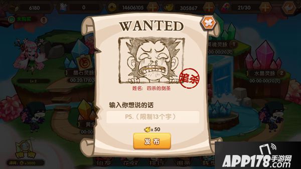 所以千万不要大意,当然对占领灵脉的敌人也不要心慈手软!主人们可以通过接下别人发布的追杀令,杀他个片甲不留,坐收奖励。