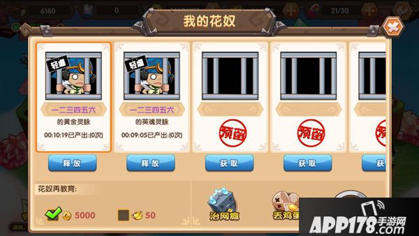 若自己成为花奴,也可以选择反抗。每日凌晨5点花奴都会被释放,期间产出的资源可通过邮件领取。