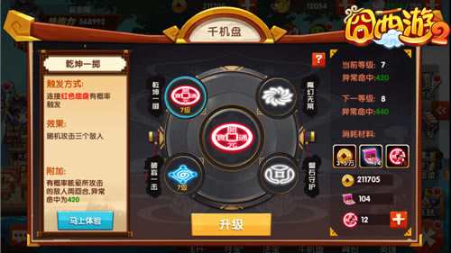 谋定而后动,千机定生死!千机盘是《囧西游2》手游独创的战前策略玩法,是重要的养成线之一。想要玩转千机盘,前提需要先通关无底洞第五关来获得首个千机盘,千机盘逐个开启后,点击发动底盘技能可以对敌人进行攻击甚至造成额外伤害,比如“万物复苏”底盘:可以消除我方场上所有的粉色底盘,且回复效果为3倍。另外,千机盘也可以进行升级的,通过消耗铜钱以及冥阴纸可以提升相对应的功能效果。
