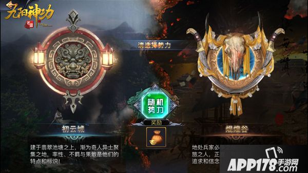 如果玩家随机选择势力,则可以获得100碎金奖励!当你确定自己的势力后,也就意味着你将加入到两方无休止的斗争当中,每一个侠客都要尽力为本方实力争取利益!